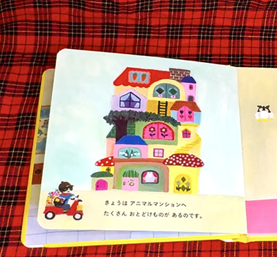 しろくろねこのゆうびんやさんが、アニマルマンションへおとどけもの