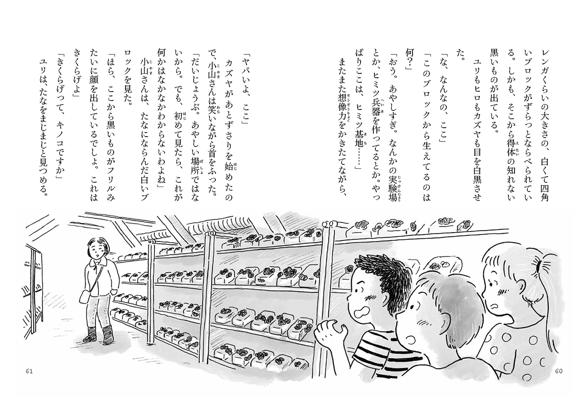 夏休みでヒマを持てあましているヒロといとこのカズヤは、近所の山に不思議な場所があると、姉のユリから聞かされる。探検に気分で見に行くと、確かに怪しげな洞窟が。翌日、ユリも参加して向かうと、そこはキクラゲを栽培している場所で、もとは第二次世界大戦中、疎開していた子どものために作られた防空壕のあとだった…。防空壕の跡地をのこしながらキクラゲを栽培し、歴史を伝えているエピソードをもとにした物語。